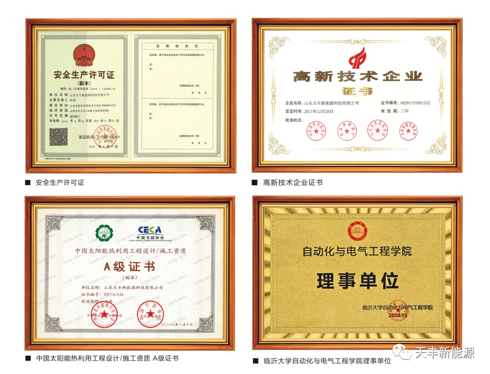 當下的新能源行業,資質已成為企業生存的生命線。對于消費者來說,萬一買到沒有資質企業生產的陽臺壁掛熱水器,意味著日后的售后、維修等服務,將得不到保障,其中的損失最終也將由用戶自行買單。天豐素有“太陽能熱利用工程專業品牌”之稱,憑借扎實的口碑、過硬的產品實力、持續溢價的品牌價值,早早攬獲“建筑機電安裝工程專業承包三級資質”、“太陽能熱利用工程設計、施工A級資質”等全品類產品資質加身,進一步夯實在太陽能陽臺壁掛領域市場的領軍地位,助力經銷商伙伴長線經營、長久發展。以資質力為翼,天豐經銷商合作伙伴更是擁有靈活應變、縱橫市場、放心賣貨的底氣,攜手企業實現品牌騰飛。
