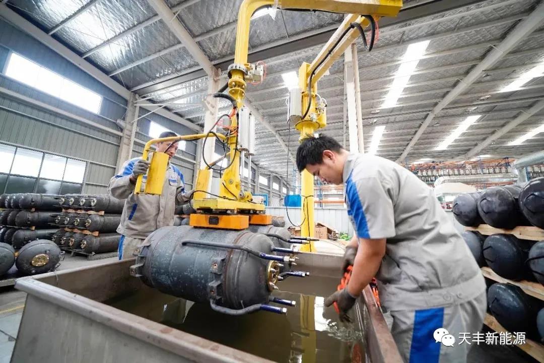 為了保證產(chǎn)品質(zhì)量,天豐公司要求每臺(tái)產(chǎn)品都要進(jìn)行1.0兆帕的氣密性試驗(yàn),從而確保每臺(tái)出廠產(chǎn)品都是合格品,達(dá)到“0不良”的成效。由公司專門研發(fā)的多工位碼垛試壓一體機(jī),集碼垛、轉(zhuǎn)運(yùn)、翻轉(zhuǎn)、試壓等功能于一體,能夠快速高效的實(shí)現(xiàn)內(nèi)膽的試壓、碼垛、轉(zhuǎn)運(yùn)、翻轉(zhuǎn)等工作,提升了工作效率。